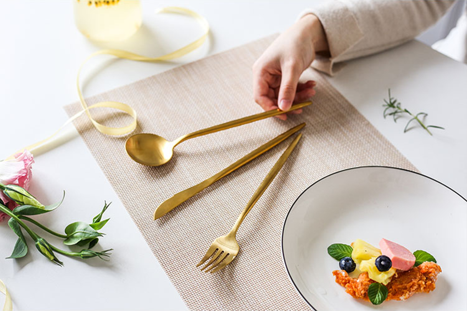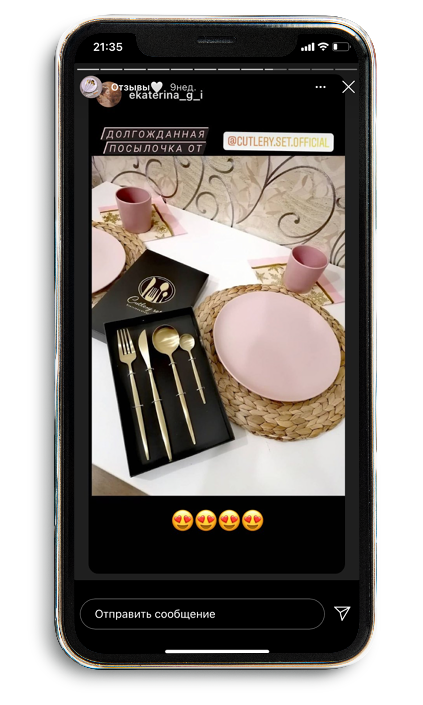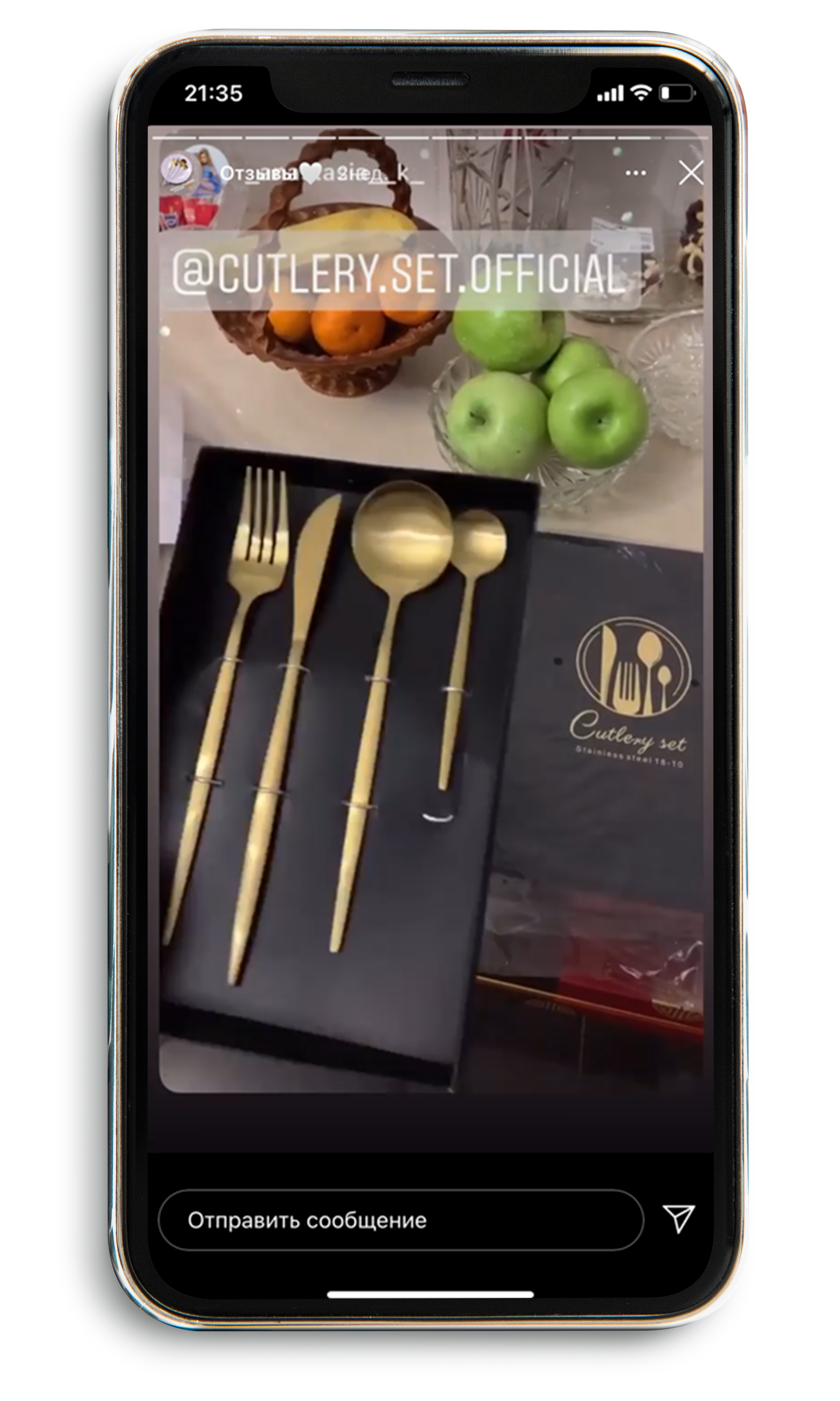В набор входит: Вилка, нож, ложка столовая, ложка чайная.
